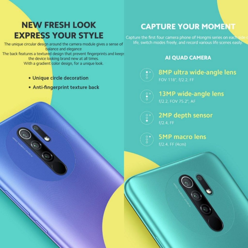 Il Redmi 9 sarà sicuramente un battery – phone grazie ai suoi 5.020 mAh con supporto alla ricarica rapida a 18W. Altri elementi che lo rendono ancora più completo sono il Face Unlock, il lettore d’impronta digitale fisico posto sul retro, il sensore IR, supporto al Dual Sim e la presenza del jack per le cuffie da 3,5 mm.