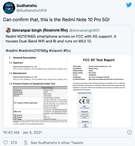 Il dispositivo è riconosciuto sul sito FFC con il nono in codice M2101K6G, inoltre, è stato certificato dall’European Economic Commission, dall’IMDA di Singapore e dall’MCMC della Malesia.